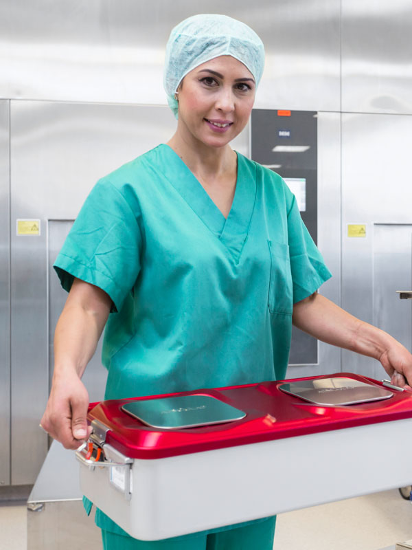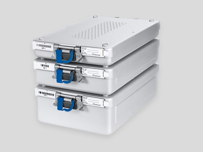 The containers include a locking system that ensures reliable closure and hygienic opening. They support spacesaving storage in the sterile supply cycle through stackable use. The quick release filter holder allows fast replacement of Aesculap sterile filters, available as singleuse filters or as a reusable option for up to one thousand sterilization cycles. Systemdesigned trays support processing, thermal disinfection, sterilization, transport and storage of instruments.